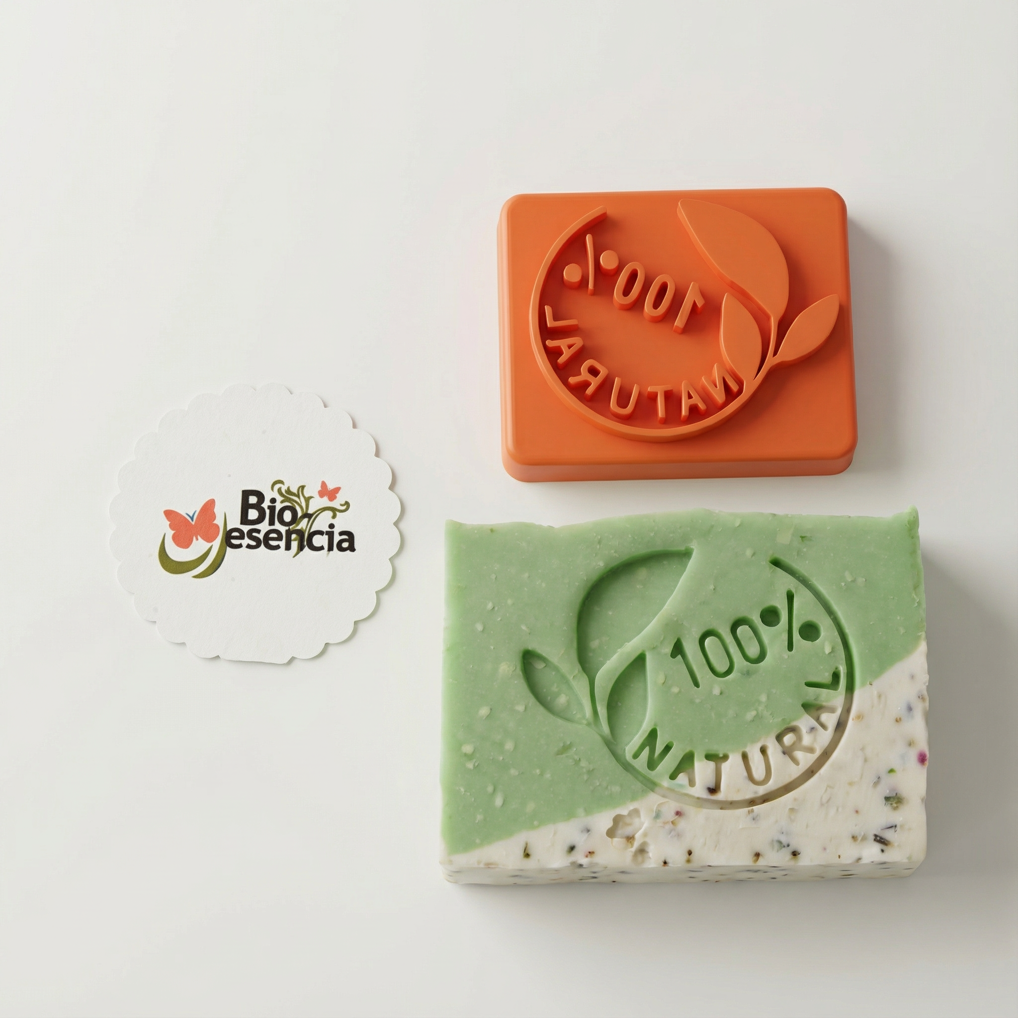Sello con el mensaje 100 % NATURAL, pensado para dejar claro, de un vistazo, que tu jabón está hecho con ingredientes naturales y sin artificios.